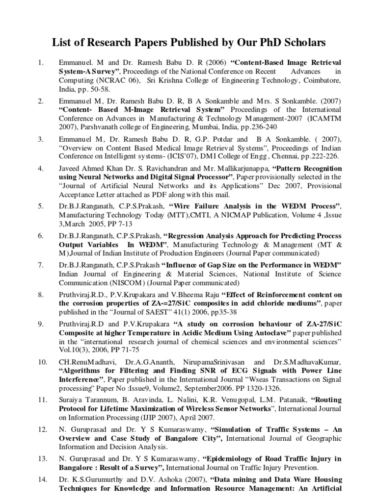 List of Research Papers Published by Our PhD Scholars Cryptography
